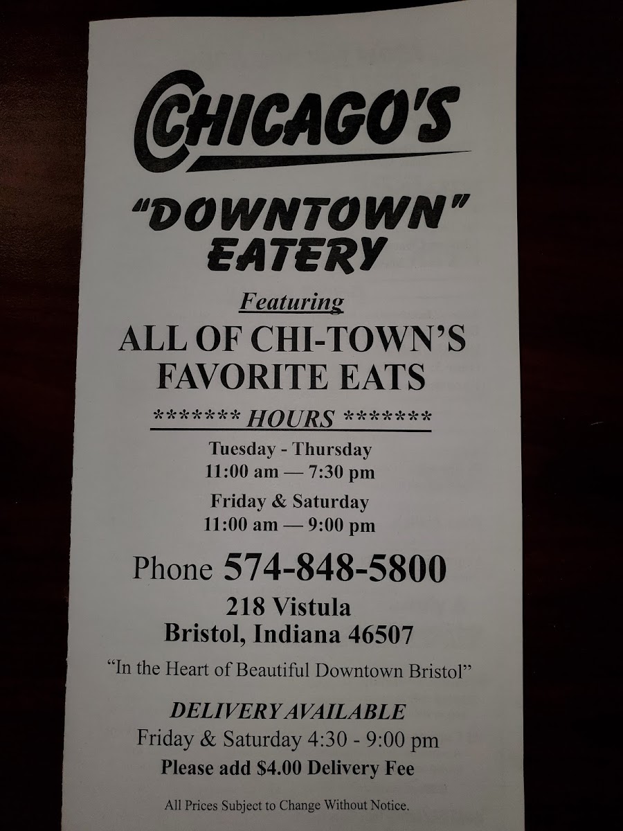 The menu at Chicagos Downtown Eatery offers a straightforward, casual dining experience centered around familiar favorites that bring comfort and a taste of Chicago to Bristol. It’s a place where simple café-style dishes meet hearty, satisfying meals, making it easy to enjoy a relaxed lunch, a casual dinner, or a weekend treat with family and friends.